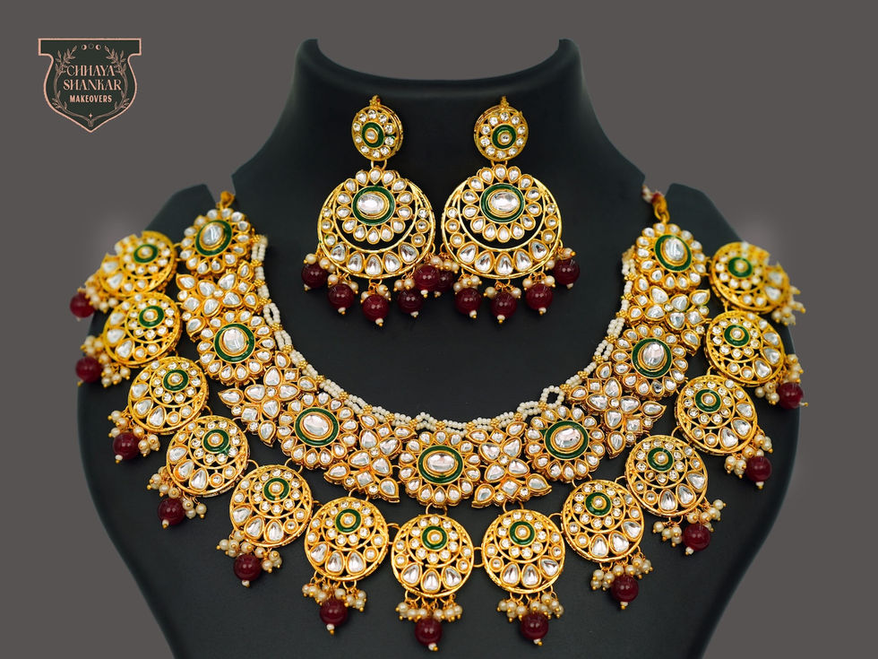 Discover the epitome of elegance with CSM Jewellery's Kundan Necklace Set, perfect for Bridal, Engagement, Sangeet, Haldi, Mehndi, and Reception. Our exquisite Kundan craftsmanship captures the grandeur of Jaipur's heritage, ensuring you shine brilliantly on your special day. As the best place to rent or buy unique fashion jewellery for weddings and other events, we pride ourselves on offering pieces that enhance your beauty and celebrate tradition. Choose CSM Jewellery to adorn yourself with timeless sophistication and unparalleled charm.